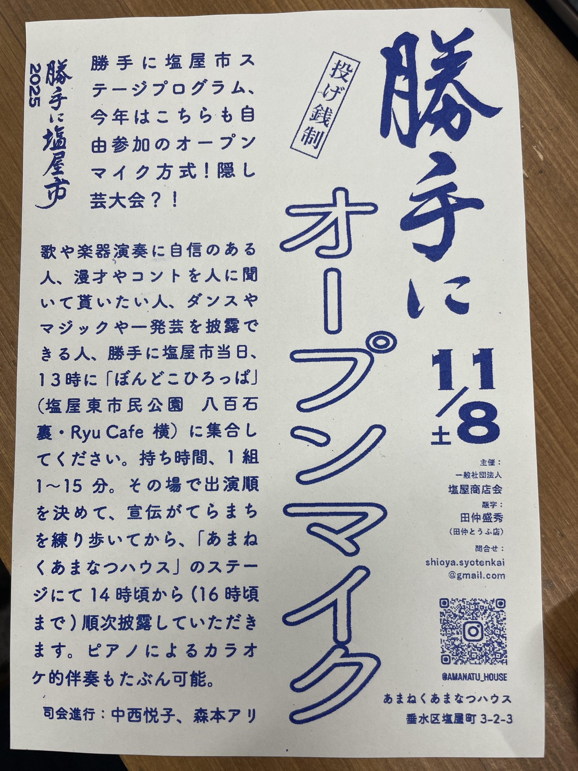 勝手に塩屋市ステージプログラム、今年はこちらも自由参加のオープンマイク方式!